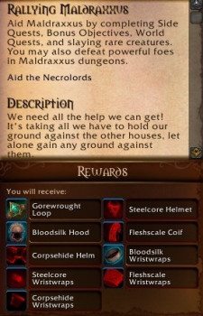 Danach erhaltet ihr die Quest “Die Schattenlande unterstützen”, bei der ihr ein Gebiet zum Anfangen aussuchen könnt. Aktuell ist dies in der Beta nur ein Vorschlag, da die World Quests alle Gebiete zugänglich machen, kann man zu einem belieben Gebiet hinfliegen und dort eine Quest annehmen, die levelgerechte Ausrüstung gibt. Dazu sind alle Nebenquests in jedem Gebiet aufgedeckt auf der Karte, was einen den Start jener erleichtert.